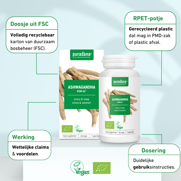Ja, de KSM-66 ashwagandha van Purasana is vegan. KSM-66 is een ashwagandha-wortelextract dat bestaat in een traditionele en een vegan versie. De traditionele versie bevat sporen van melk en is niet geschikt voor veganisten. De vegan variant is vrij van melk en allergenen, terwijl de effectiviteit vergelijkbaar blijft. De kwaliteit van het extractieproces, en niet het gebruik van melk, bepaalt de werkzaamheid van KSM-66.