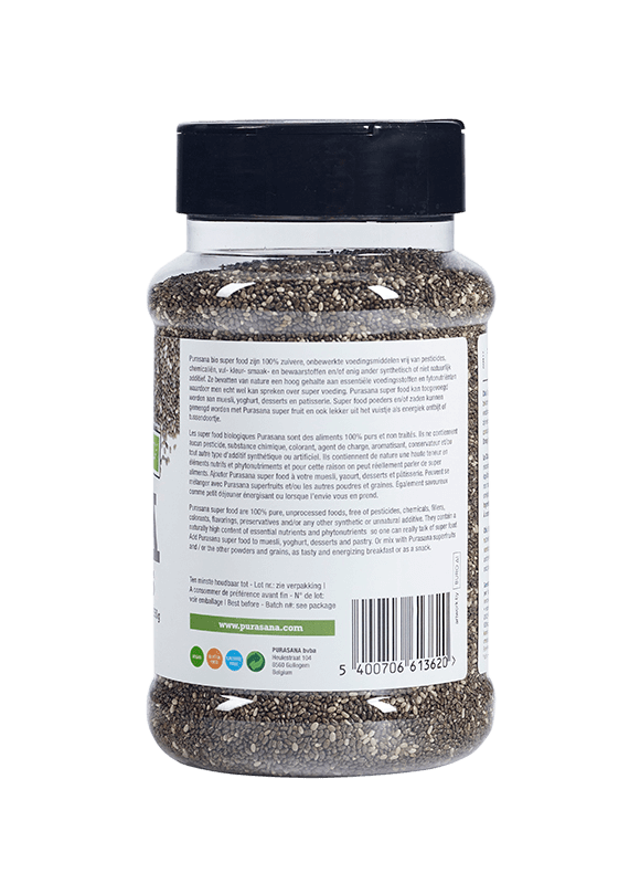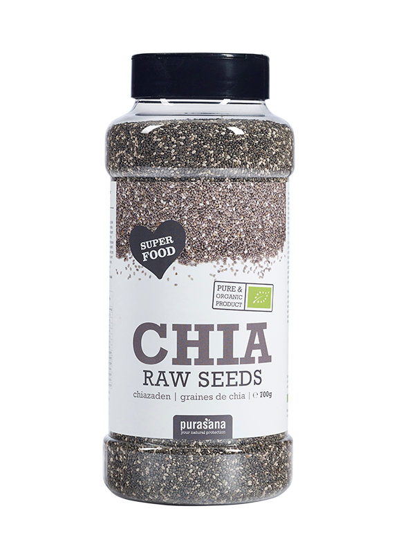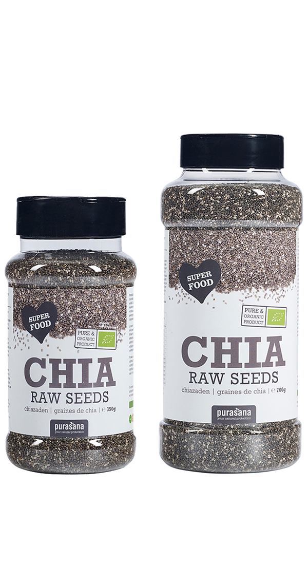 Chia is een kruid dat bloeit in Zuid-Amerika. Het zaad is al eeuwenlang een belangrijk voedingsmiddel. Chia levert van nature tal van voedingsstoffen en fytonutriënten in een optimale verhouding van voedingstoffen en nutriënten. Chiazaden zijn een bron van omega-3 en bevatten calcium, magnesium en koper. Maak je eigen Chia-pudding of voeg toe aan een smoothie.