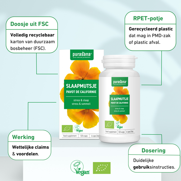 Slaapmutsje (Frankrijk)*: 240 mg, hydroxypropylmethylcellulose (capsule) *Afkomstig van biologische landbouw.