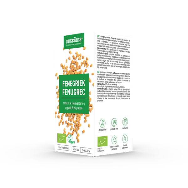 Het zaad van de fenegriek verbetert de eetlust, draagt bij tot een normaal vetmetabolisme, ondersteunt de spijsvertering en helpt gastro-intestinale ongemakken verminderen. Ook draagt fenegriek bij tot een normaal glucose- en insulinemetabolisme.