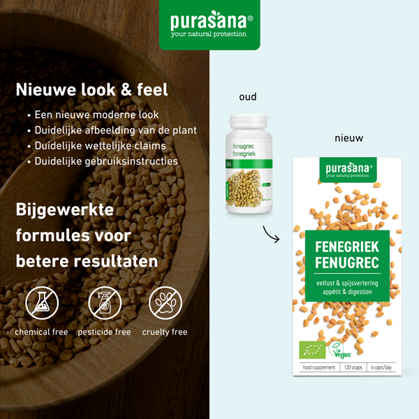 Fenegriek* (zaad, Frankrijk): 330 mg, hydroxypropylmethylcellulose (capsule) * Afkomstig van biologische landbouw.