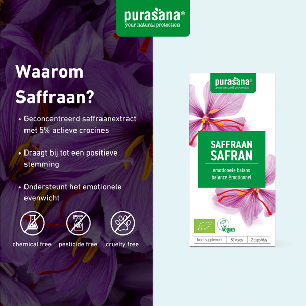 Saffraan kan de heropname van neurotransmitters als serotonine in de hersencellen remmen, wat een verbeterde emotionele balans als resultaat heeft.