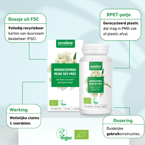 Moerasspirea* (plant, Frankrijk of Polen): 220 mg. hydroxypropylmethylcellulose (capsule) *Afkomstig van biologische landbouw.