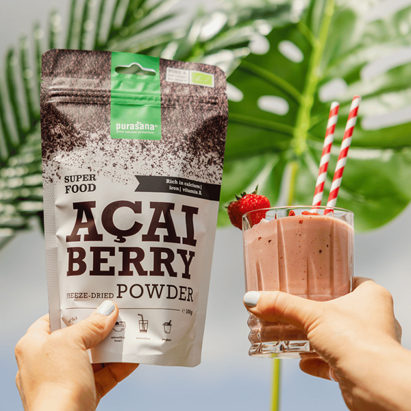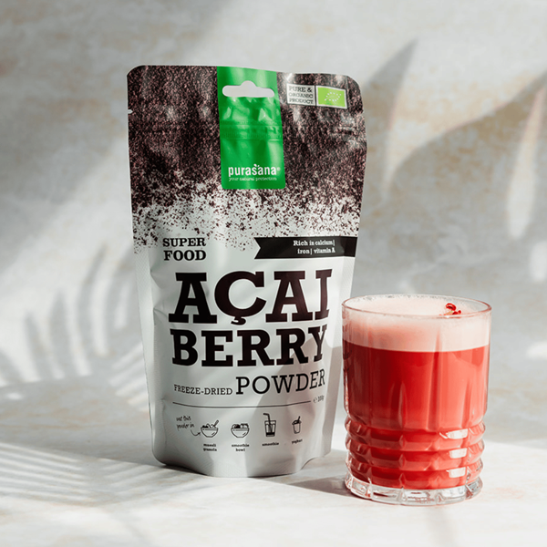 Acai bessen zitten boordevol vitamine A, kalium, calcium en ijzer die blijven behouden dankzij het vriesdrogen. Wanneer de bessen rijp zijn, worden ze geplukt, verpulverd en gevriesdroogd tot acai poeder.