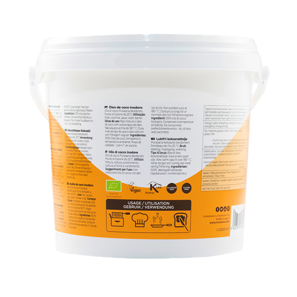 Kies voor Purasana biologische kokosolie zodat je op een gezonde manier kan frituren, bakken, braden en wokken. Deze kokosolie ruikt en smaakt niet naar kokos.
