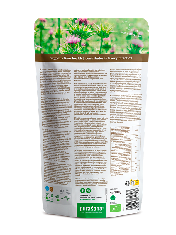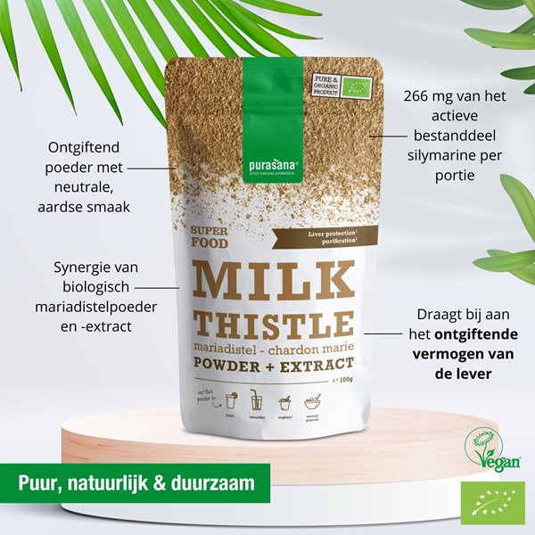 Purasana's Mariadistel Extract + Poeder is een biologische en vegan superfood die zorgvuldig is samengesteld om de leverfunctie te ondersteunen.
