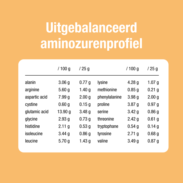 Eiwitten zijn essentieel voor het behoud van spiermassa en normale botten. Daarnaast is cacao een bron van vezels, magnesium en ijzer die de energiestofwisseling ondersteunen.