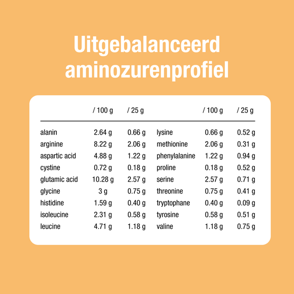 Erwten proteïne is geschikt voor veganisten want het is 100% plantaardig en heeft een hoog geconcentreerd aminozurenprofiel. Dit helpt het lichaam eiwitten aanmaken essentieel voor het behoud van de spiermassa en normale botten.
