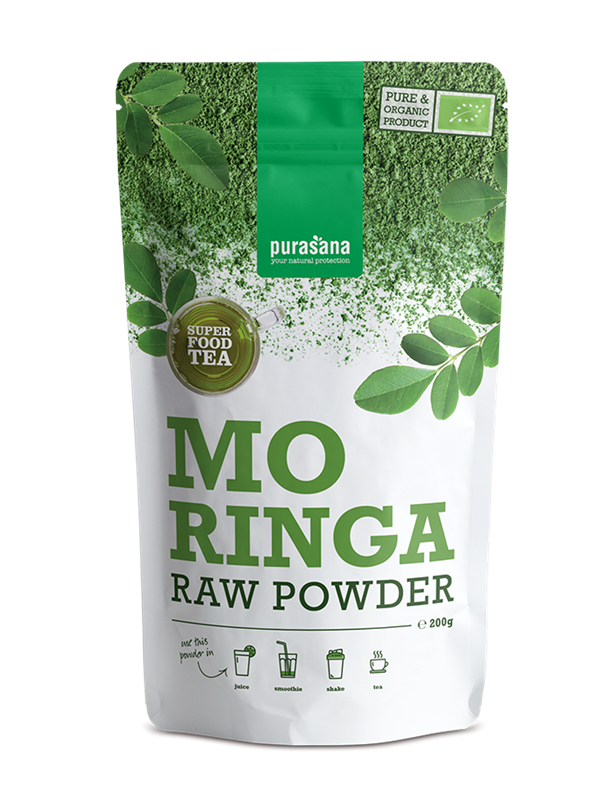 Purasana Moringa Powder wordt gemaakt van de bladeren van de Moringa boom. Deze boom groeit in de subtropische gebieden van India en Afrika, en is bestand tegen extreme hitte en droogte.