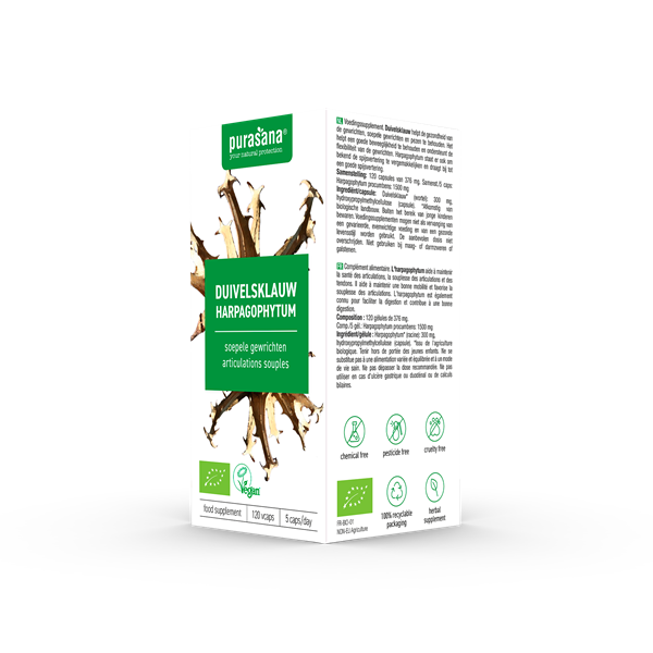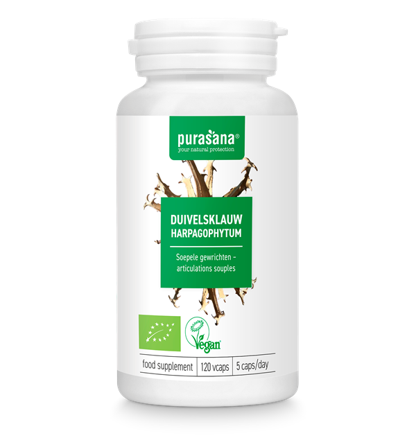 Het draagt bij tot soepele gewrichten en pezen, en ondersteunt zo de beweeglijkheid en flexibiliteit. Ook draagt duivelsklauw bij tot een normale spijsvertering.