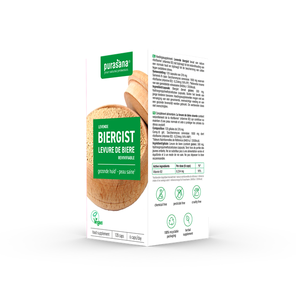 Het bevat van nature riboflavine (vitamine B2) dat bijdraagt tot de instandhouding van een normale huid en de bescherming van cellen tegen oxidatieve stress.