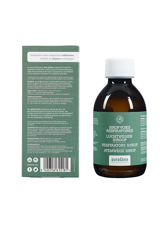 Luchtwegen Siroop combineert zorgvuldig geselecteerde biologische ingrediënten om je luchtwegen op natuurlijke wijze te ondersteunen. De basis van glutenvrije tarwesiroop vormt een zachte en voedende basis, ideaal voor dagelijks gebruik. Het eucalyptus globulus hydrolaat staat bekend om zijn verzachtende en verfrissende eigenschappen, waardoor het helpt de luchtwegen te openen en de ademhaling te vergemakkelijken.