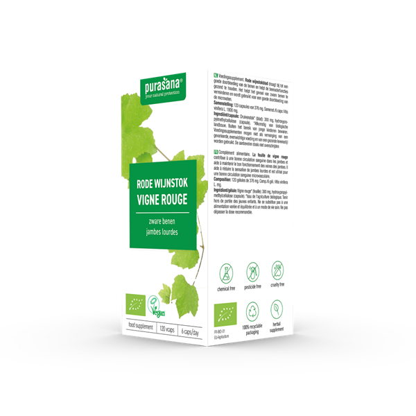De bladeren van rode wijnstok dragen bij tot een goede doorbloeding van de benen en helpen zo de beenaderfuncties gezond houden. Rode wijnstokblad vermindert het gevoel van zware benen door de doorbloeding van de microvaten te ondersteunen.