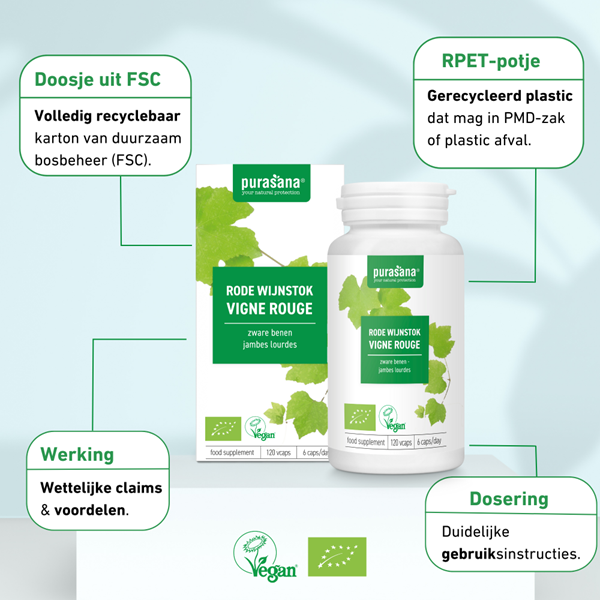 Druivenstok* (blad, Spanje of Frankrijk): 300 mg, hydroxypropylmethylcellulose (capsule) *Afkomstig van biologische landbouw.